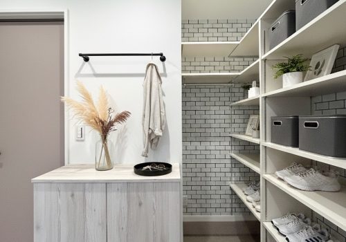 収納力を確保した、すっきりとした玄関収納